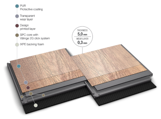 LVT i SPC podovi imaju mnoštvo opcija za jednostavnu ugradnju. U pitanju je jednostavna i brza ugradnja klik sistemom, pri čemu nije neophodno lepljenje. Moguće je polaganje i na postojeću podnu oblogu bez opasnosti da će novi sloj poprimiti nedostatke stare podne obloge. Iz tog razloga, pogodne su i za uradi sam montažu, tj. ne zahtevaju angažovanje profesionalaca. SPC vinil podovi oponašaju izgled drvenih i kamenih obloga Pri samom sklapanju SPC vinil podova ne ostaju spojevi što im daje veoma efektan i moderan izgled. Moguće je odabrati između više kolekcija od kojih su neke idealne imitacije drvenih i kamenih podnih površina, ali uz olakšano održavanje i neklizajuću karakteristiku.